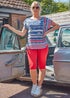 Roman Red Elastic Waist Knee Length Stretch Shorts