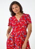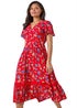 Roman Red Floral Lace Trim Pocket Midi Dress