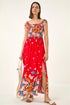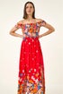 Roman Red Floral Print Bardot Shirred Midi Dress