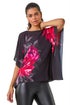 Floral Print Chiffon Overlay Top from Roman. Give your Autumn/Winter wardrobe a floral flourish with this elegant top. Featuring a stunning placement floral print, this top is designed with a delicate chiffon overlay for a touch of sophistication. The round neck and short sleeves add a classic charm to the piece. Pair with tailored trousers and heeled boots for a chic and stylish look that will take you from day to night effortlessly!