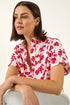 Floral Print Pleat Neck Top from Roman. Embrace the beauty of nature with this delicate floral print top. The flattering v-neck, accented with a pleat detail at the neck and cute collar, adds a touch of elegance to this short-sleeved top. Cut from a soft cotton fabric, this top falls in a relaxed tunic shape. Style with a denim jacket and linen trousers for a complete Spring Summer look!