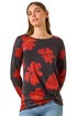 Roman Red Floral Print Stretch Hem Top