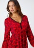 Floral Print Stretch Jersey Dress from Roman. Inject fabulous floral print into your transitional wardrobe with this stretch jersey dress. Cut from a stretch jersey fabric, this dress features a feminine v-neckline with a striking contrast trim and full-length sleeves finished with elasticated cuffs. An empire waistline ensures a flattering fit throughout the knee length, fit and flare skirt. Designed to pull on over-head this dress is adorned in a contrasting floral print. Pair with tights, boots and a leather jacket for chic everyday style!