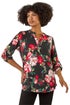 Floral Print Stretch Shirt from Roman. Make a statement this Autumn/Winter season in this fabulous floral print ITY shirt. Featuring a trendy puff print and a flattering notch neck design, this shirt stands out from the crowd. Detailed with chic shoulder pleats and tab fastening on the 3/4 sleeves, this shirt offers both style and comfort. The stretch jersey fabric ensures a lovely fit, while the all-over floral print adds a touch of elegance. Pair with jeans and heeled boots for a fashion-forward look that is sure to turn heads!
