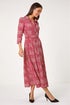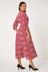 Roman Red Geometric Print Tie Waist Midi Shirt Dress