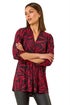 Leaf Print Pleated Top from Roman. Give your Autumn wardrobe a stylish update with this leaf print pleat front top. Designed with a flattering V neck and pretty pleat detail at the front, this top exudes elegance. The 3/4 tabbed sleeves add a touch of sophistication, perfect for casual days out. Crafted from plisse fabric, this top ensures both style and comfort. Pair with jeans and ankle boots for a trendy look all season long