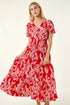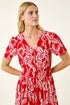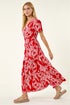 Roman Red Leaf Print Shirred Maxi Dress