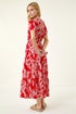 Leaf Print Shirred Maxi Dress from Roman. Embrace the beauty of Spring/Summer in this leaf shirred maxi dress. The V neck and short sleeves with button detail add a touch of charm to this stylish piece. Designed in a flattering fit and flare shape with a tiered skirt, this dress is perfect for any occasion. Pair it with sandals and a denim jacket for the ultimate relaxed yet chic look.