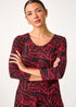 Roman Red Leaf Print Stretch Tunic Top