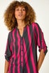 Linear Print Longline Blouse from Roman. For a versatile piece this season, opt for this linear longline blouse. Crafted from a woven fabric, it features a stylish notch neckline and a full button through placket for a chic touch. Designed collarless with 3/4 button up sleeves, this blouse transitions effortlessly from day to evening. Simply pair with tailored trousers for a sophisticated work look or style up with heeled boots for a night out!