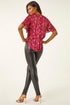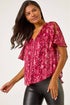 Roman Red Metallic Angel Sleeve V-Neck Top