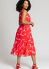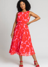 Roman Red Petite Abstract Print Pleated Midi Dress