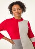 Petite Colour Block Knitted Dress from Roman. Elevate your Autumn Winter wardrobe with our trendy Petite colour block knit dress. This fitted dress has a striking colour block design and is perfect for making a style statement. The round neckline and 3/4 sleeves add a touch of sophistication, while the shape flatters your figure. Pair with tights and heeled boots for the ultimate outfit perfect for the colder seasons!