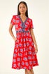 Roman Red Petite Floral Contrast Stretch Midi Dress