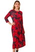 Roman Red Rose Print Gathered Stretch Midi Dress