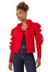 Roman Red Ruffle Contrast Knit Cardigan