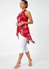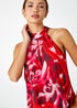 Roman Red Sleeveless Swirl Print Halter Neck Top