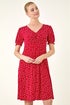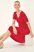 Roman Red Spot Print Gathered Stretch Dress