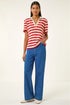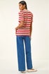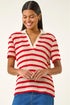 Roman Red Stripe Crochet Collar Knit Top
