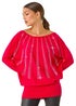 Sunray Hotfix Soft Knit Jumper from Roman. Add some glamour to your Autumn/Winter wardrobe with this stunning batwing jumper. The luxurious fabric has a soft hand touch and shimmering silver/clear embellishments that catch the light effortlessly. Designed with elegant long sleeves and a relaxed batwing shape, this top is perfect for special occasions or evening events. Pair with tailored trousers and heels for a chic and sophisticated look that will make you stand out from the crowd!