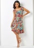 Textured Leaf Print Panel Dress from Roman. Great for any occasion, this multicoloured textured tropical leaf print panel dress is made from a stretch fabric to ensure a comfortable and flattering fit. It's panel detailing with a fit and flare shape creates a sophisticated silhouette and is complimented by contrasting exposed overlocked seams. Pack this gorgeous number into your suitcase for your next holiday or cruise for an effortlessly styled outfit!