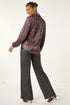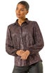 Roman Rose Foil Plisse Button Through Blouse
