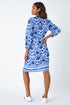 Roman Royal Blue Abstract Border Print Shirt Dress