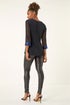Brillo Sequin Cuff Top from Roman. Embrace the glamour in this sequin cuff top, perfect for your upcoming events! This classy top features a round neckline and 3/4 sleeves with eye-catching sequin cuffs. Made from a comfortable stretch shimmer brillo fabric, this top is designed in a flattering tee shape for effortless party wear. Pair with leather trousers and heeled boots for an elegant and stylish look!