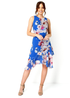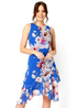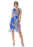 Roman Royal Blue Floral Chiffon Hanky Hem Ruffle Dress
