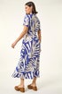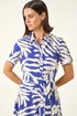 Roman Royal Blue Leaf Print Belted Midi Shirt Dress