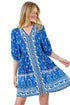 Learn morePaisley Floral Border Print Dress from Roman. Step into the warmer seasons with effortless style in this border print dress. The boho-chic design features a v-neckline with delicate lace trim and fabric covered buttons along the front. Contrasting floral and paisley prints add a bohemian flair to this knee-length dress, while side pockets provide practicality. Embrace the fit and flare silhouette with gathered waist and tiered lace detail 3/4 sleeves for a feminine touch. Finish off the look with sandals and a denim jacket for a perfect picnic in the park outfit.