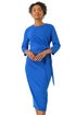 Petite Tie Waist Stretch Midi Dress from Roman. Dress to impress in this trendy Petite tie waist dress, perfect for the Autumn Winter season. Featuring a chic round neckline and 3/4 sleeves, this dress is crafted from a smooth stretch fabric for ultimate comfort. The midi length is elevated with a stylish tie waist detail, adding a touch of sophistication to your stunning look. Pair with a denim jacket and ankle boots!