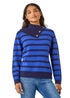 Roman Royal Blue Stripe Cowl Neck Button Jumper