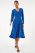 Roman Royal Blue Wrap Bodice Tie Waist Midi Dress