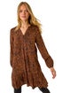 Roman Rust Animal Print Pintuck Smock Dress