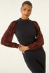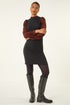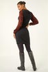 Contrast Print Knitted Dress from Roman. Add a touch of charm and warmth this Autumn Winter with this knee-length dress featuring adorable frill details along the neckline. Cut from a comfortable stretch jersey fabric with a contrast speckled print. The long sleeves add extra warmth while the snug fitted shape is both flattering and comfortable. Style with tights and ankle boots for a perfect seasonal outfit!
