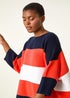 Textured Colour Block Knit Jumper from Roman. Elevate your Autumn Winter knitwear collection with our colour block jumper. Crafted from a textured knit fabric, this stylish piece features a unique, eye-catching colour block design. The relaxed fit and 3/4 sleeves make it perfect for layering in the cooler months, while the shaped neckline adds a modern touch to your look. Pair with your favourite jeans and ankle boots for a fashionable outfit that will keep you warm all season long!