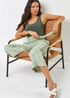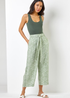 Roman Sage Ditsy Floral Elastic Tie Waist Cropped Culottes