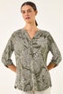Roman Sage Floral Puff Print Gathered Shirt