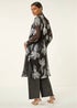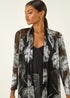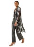 Foil Leaf Print Plisse Kimono from Roman. Give your Autumn Winter wardrobe a touch of elegance with this foil leaf print kimono. Crafted from a comfortable plisse fabric, this kimono features a stunning foil leaf print and an edge to edge opening with long sleeves. Its longline shape adds a touch of sophistication to any outfit. Simply layer it over your favourite shirt and jeggings paired with ankle boots for a stylish look!