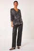 Metallic Soft Touch V-Neck Top from Roman. Get ready to shine in this stunning metallic V-Neck top! Featuring an eye catching abstract spot print all over, this top is perfect for the Autumn/ Winter season. The soft touch peach skin fabric combined with the below hip length and 3/4 length sleeves make it a comfortable and stylish choice. The pleat front detail adds a touch of sophistication to this party ready piece. Pair with pleather trousers and heeled boots for a show stopping look that will turn heads wherever you go!