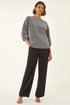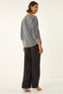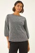 Metallic Textured Stretch Top from Roman. Add a touch of glamour to your Autumn/Winter wardrobe with this metallic silver stretch top. The all-over metallic finish elevates the look, making it perfect for party season. With three-quarter sleeves and a round neckline, this top finishes at the low hip for a flattering fit. Pair it with your favourite jeans and ankle boots for a stylish yet effortless ensemble!