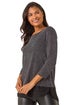 Shimmer Chiffon Hem Top from Roman. Shine bright this Autumn/Winter in this stylish shimmer top. Designed with a classic round neck, this top features an eye catching brillo glitter fabric that glistens beautifully under lights. The 3/4 sleeves add a touch of sophistication, while the chiffon hem brings a feminine finish. Perfect for dressing up, pair with pleather trousers and heeled boots for a dazzling party ready ensemble!