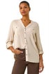 Buttoned Pocket Shirt from Roman. Elevate your casual wardrobe with this chic pocket shirt. Featuring a flattering V-Neckline and easy 3/4 length sleeves, this button through shirt is a must have for the Spring/Summer season. Complete with pockets on the front bust, this versatile shirt adds a touch of practicality and style to your everyday look. Pair with your favourite jeans and trainers for a laid-back and stylish ensemble.