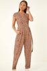 Petite Spot Tie Waist Jumpsuit from Roman. Get ready to make a statement in the spot jumpsuit this Spring/Summer season. Featuring a flattering wrap detail bodice and chic short sleeves, this jumpsuit transitions seamlessly into a full-length trouser silhouette. Crafted from a soft fabric, it offers a comfortable fit for all-day wear. Pair with sandals and a denim jacket for a stylish and laid-back look that's perfect for any casual outing or day out with friends!