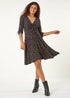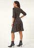 Spot Ruched Stretch Dress from Roman. Get ready to make a statement in this chic spot gathered dress. Crafted from a comfortable stretch jersey fabric, this dress features flattering ruching with ties at the bust and 3/4 length sleeves with ruched detail. The fit and flare shape ensures a stylish silhouette, while the knee length adds a touch of sophistication. Pair with tights and boots for a perfect Autumn/Winter ensemble that's both trendy and timeless!