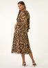 Animal Print Shirred Midi Dress from Roman. Add a touch of wild flair to your wardrobe with this trendy animal print dress. Featuring a trendy round neckline and striking shirred sleeves, this piece is cut from a comfortable woven fabric. The dress comes with a self-tie belt for a snug fit, perfect for showcasing your curves. Team with a denim jacket and ankle boots for a stunning fall look that's sure to turn heads!