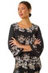 Floral Print Lace Asymmetric Hem Top from Roman. Go bold and beautiful in our floral print top that blooms this Autumn Winter. The flattering round neckline and 3/4 length sleeves make this piece a must-have for the season. Crafted from stretchy jersey fabric, you can effortlessly pull it on for a trendy look. Featuring an eye-catching asymmetric hem with lace details, this tunic-shaped top is perfect for a smart day outfit. Style it effortlessly with wide-leg trousers and ankle boots for a complete look!