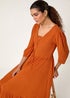 Lace Up Shirred Midi Dress from Roman. Be a bohemian beauty this Summer in our stylish lace up midi dress! Crafted from a plain woven fabric with crinkle texture, this playful piece has a tie at the front with bead trims and elasticated 3/4 length sleeves. The whole bodice is elasticated for comfort, with shirring and a flattering v-neckline to ensure an easy pull-on fit. This dress is trimmed with a feminine frill at the hem to elegantly finish at a midi length. Endlessly versatile, this relaxed fit and flare dress can be worn with sunglasses and sandals for your next garden get together!