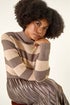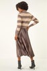 Roman Tan Stripe Knit Bodice Pleated Skirt Dress
